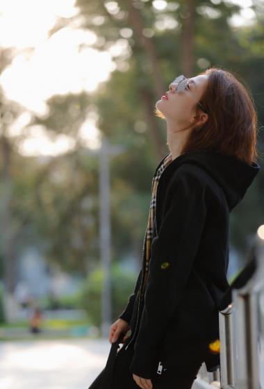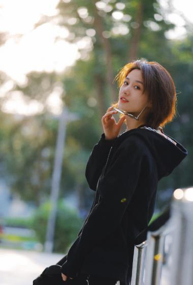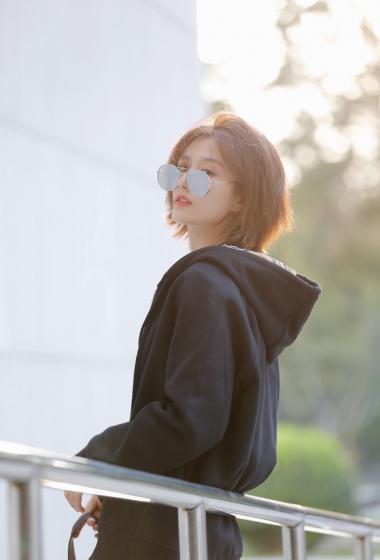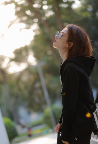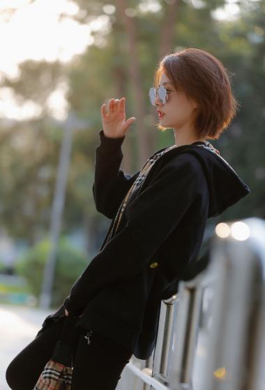 美女徐悦户外黑色帽兜风衣戴着眼镜很清爽【10P】